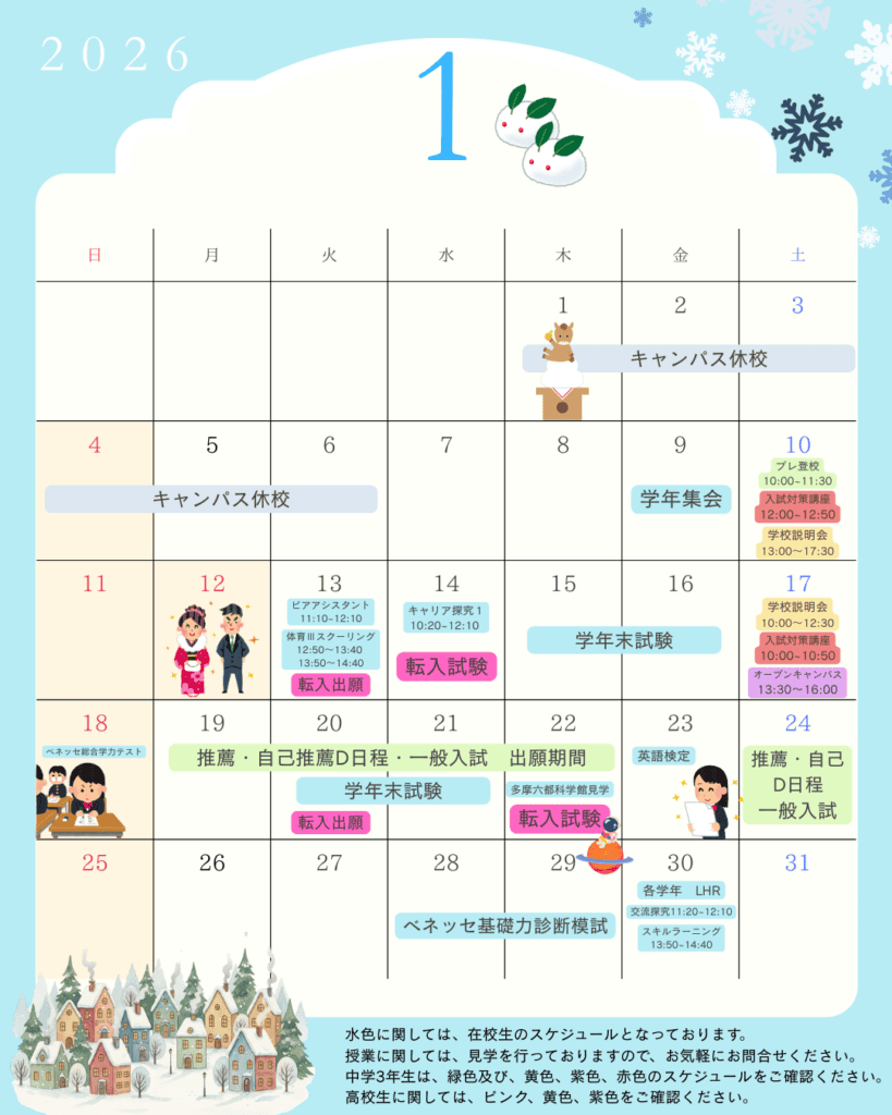 HAPPY NEW YEAR!!(1月の立川キャンパスのスケジュールも載っています!)