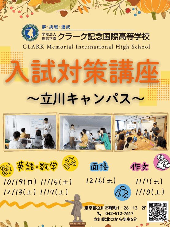 クラーク高校立川キャンパスでは、10月より入試が始まります。