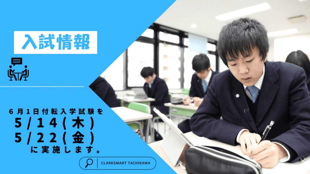 《 入試情報 》転入学/編入学2026年6月1日付転入学試験を5/14(木)・5/22(金)に実施します。