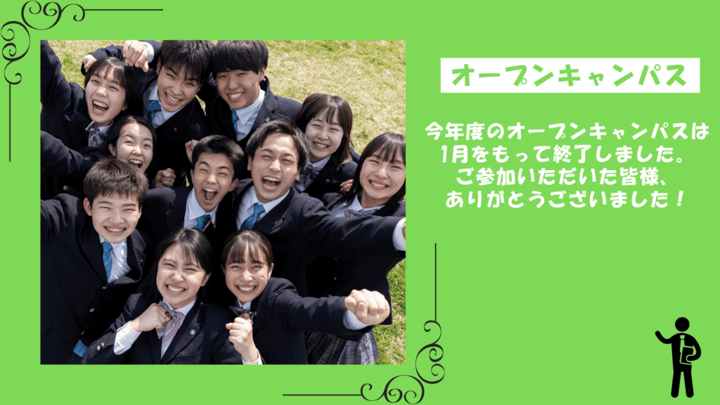 【オープンキャンパス】今年度のオープンキャンパスは1月をもって終了しました。ご参加いただいた皆様、ありがとうございました!