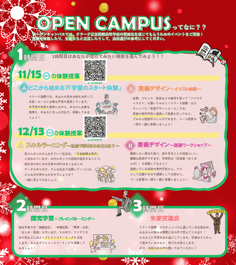 【オープンキャンパス】2025年 10/19(日)、11/15(土)、12/13(土)に開催されます!!