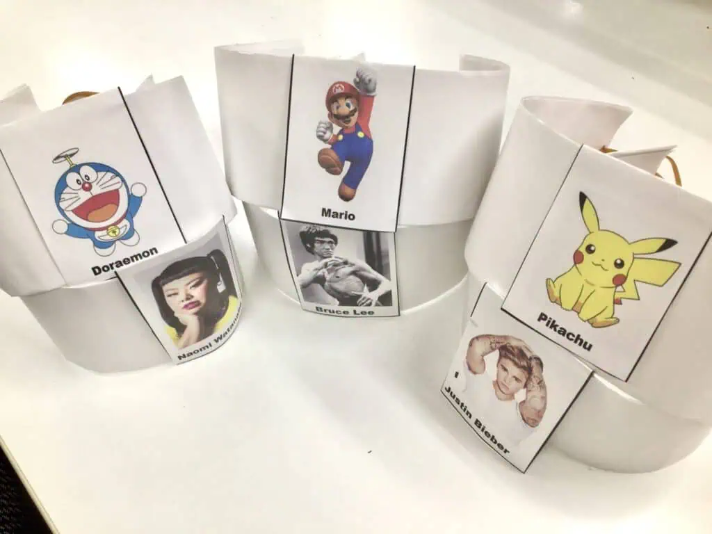 This game is fun, but at the same time a good challenge to practice speaking English with others, without following a script. Everyone wears a headband with a photo of a celebrity on their forehead. We can see everyone’s character except our own. The aim of the game is to ask questions to others and solve the mystery of who the VIP is on our foreheads.