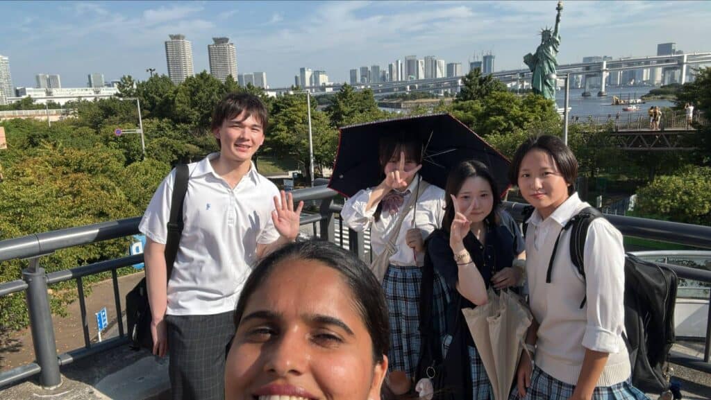 They had the freedom to explore the beautiful Odaiba area. There is a beach, a giant statue of the Gundam, a Statue of Liberty, a huge shopping mall, and much more.