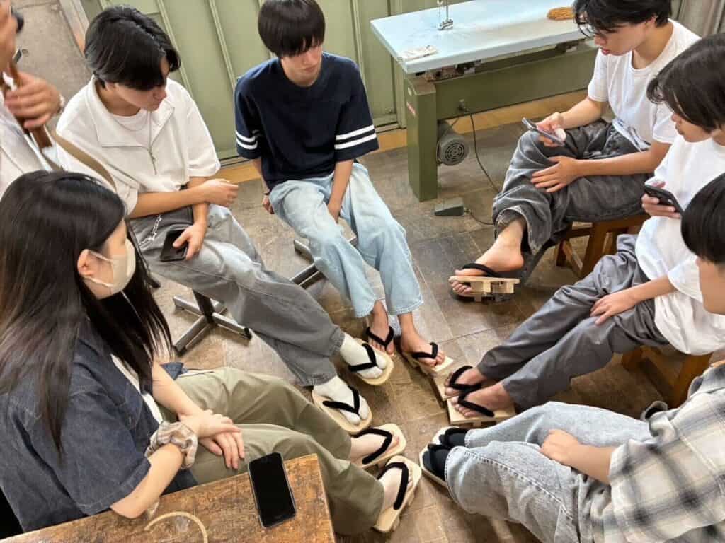 制作後には、お互いの作品を見比べて実際に下駄を履いてみて「うまくできたね!」と声を掛け合う姿もありました。