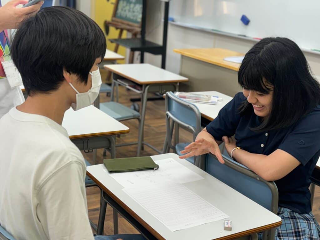 「中等部サポート」はクラーク国際中等部に勉強を教えに行く授業です。最初はどうやって声を掛けたらいいか、どうやって教えたらいいかを迷ったりもしましたが、仲間や先生と相談しながら挑戦できたのが自信にもつながりました。