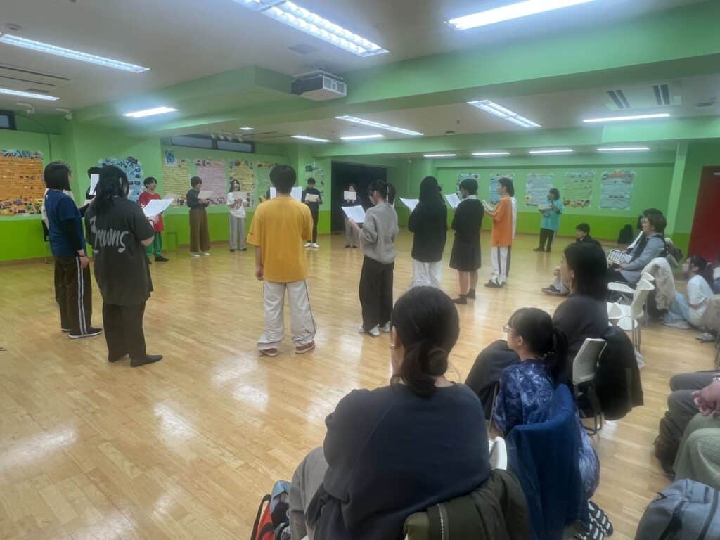 12月6日(土)、クラーク東京キャンパスでは午後にオープンキャンパスを開催し、各コースの体験授業や受験対策講座を行いました。パフォーマンスコースでは、「ちょこっと演劇体験」と題した体験授業を実施。9月の舞台公演で使用した台本の一部を読みながら、発声・滑舌練習などの基礎稽古にもチャレンジしていただきました。