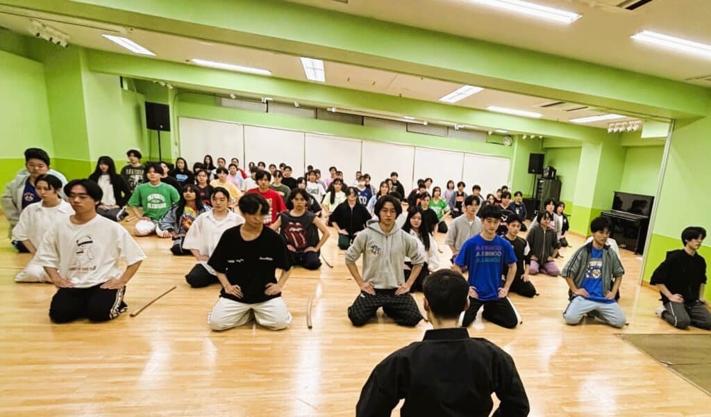 ほとんどの生徒が経験ゼロからスタートします。刀の持ち方、構え方といった基礎から始まり、基本の型を一つひとつ丁寧に学んでいきます。やがて動きは「立ち廻り」へと発展し、相手との呼吸や間を感じながら、舞台上で“物語を生む動き”へと昇華していきます。卒業後には、プロの舞台現場で即戦力として評価されるほどの力を身につける生徒も少なくありません。