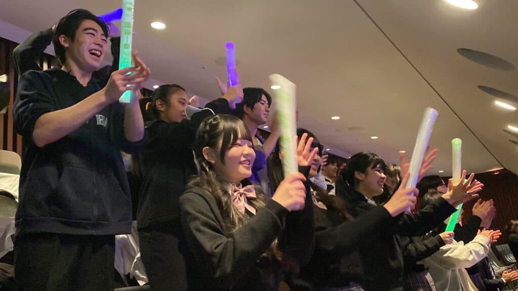 今回のゲスト出演においては、一般社団法人フェアリーエンターテイメントジャパン、そして本校のパフォーマンスコースの生徒たちともコラボ。普段は一緒にパフォーマンスをすることのないコースを超えての交流に、生徒たちはワクワクした様子でした。
