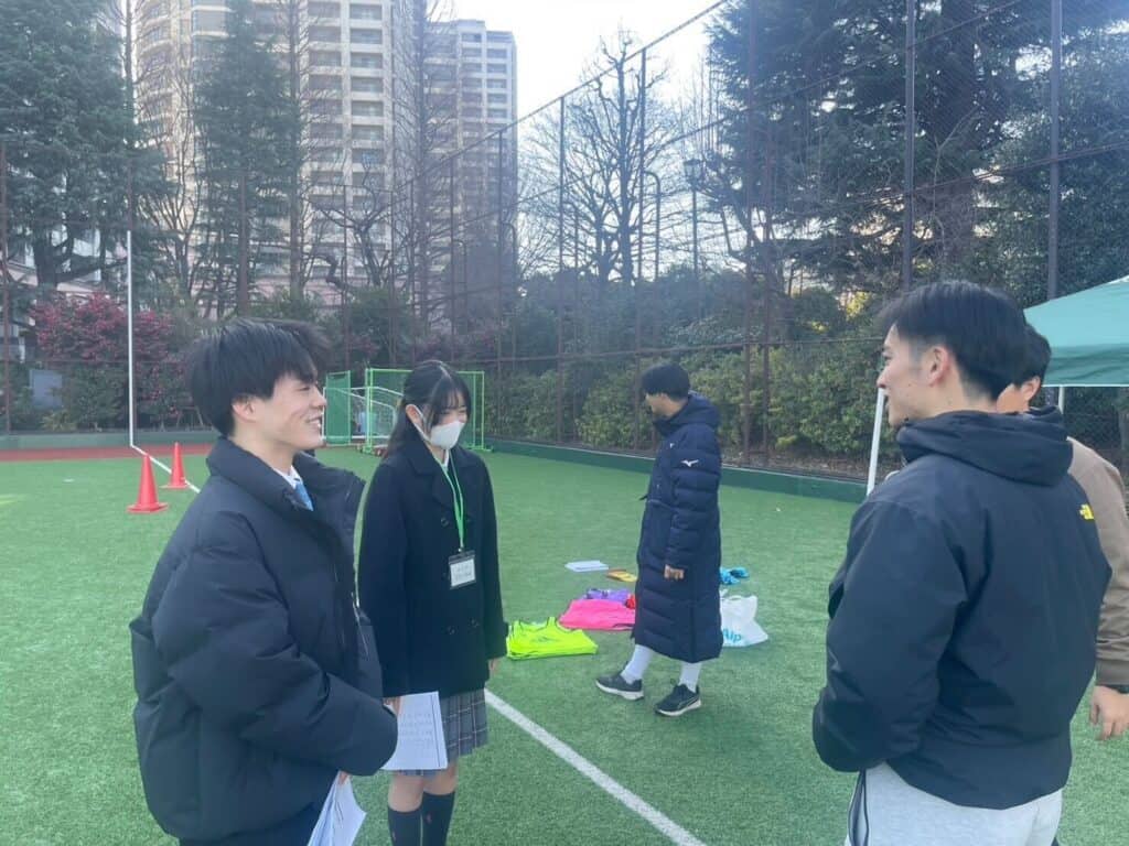 また、英語が分からないという参加者もおり、その方々には、インターナショナルコースの生徒がついて簡単な英語に直して伝えたり、時にジェスチャーを使いながら懸命にコミュニケーションを取っていました。また、英語に限らず、その参加者の現地の言葉で「頑張れ!」「いけるぞ!」「ありがとう!」「こんにちは」といった言葉をネットで調べ、実際に参加者に対して使ってみる場面も見受けられました。