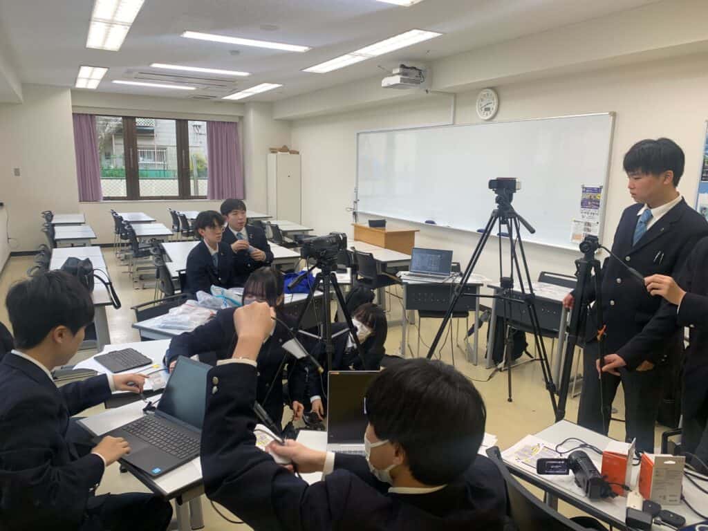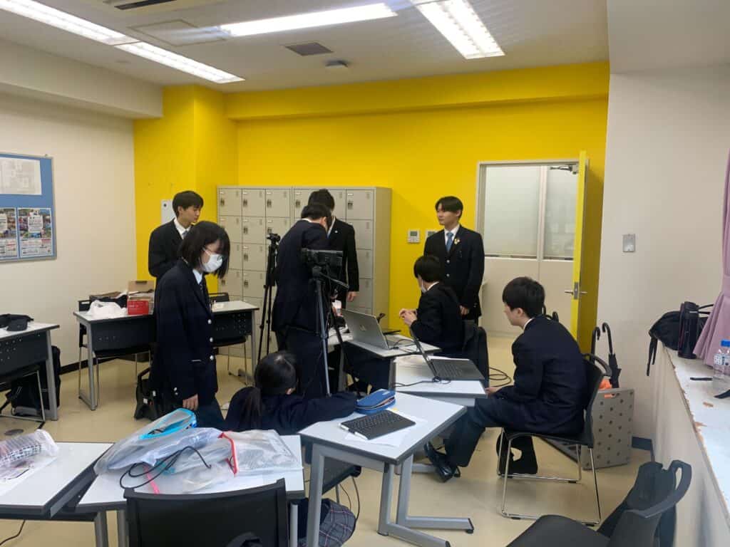 クラーク記念国際高等学校では、さまざまな学校行事で実行委員が主体となり運営しています。実行委員会は、入学式や卒業式などの式典でも中心となって何度も集まり、準備やリハーサルを経て当日を迎えます。今回は、4月10日に挙行される入学式に向けた、映像・配信部署の活動の様子をお伝えします。