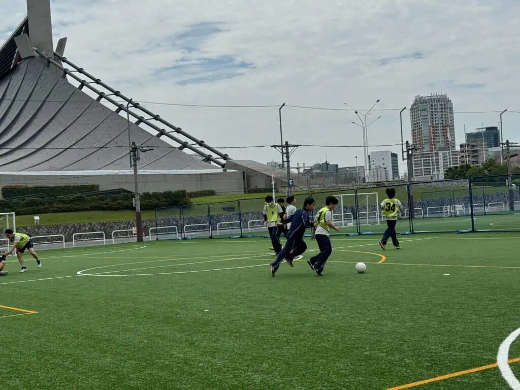 3年生の体育の授業では、代々木フットサルコートを利用してフットサルに取り組みました。青空の下、生徒たちは元気いっぱいにコートを駆け回り、白熱した試合が繰り広げられました。