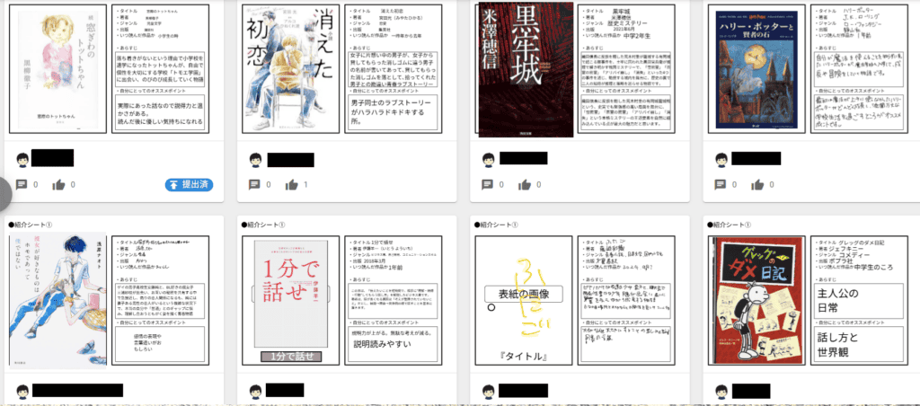また、単純なあらすじの紹介にとどまらず、班内で発表することを意識し、「自分が感じたおすすめポイント」を自分の言葉で記載しました。