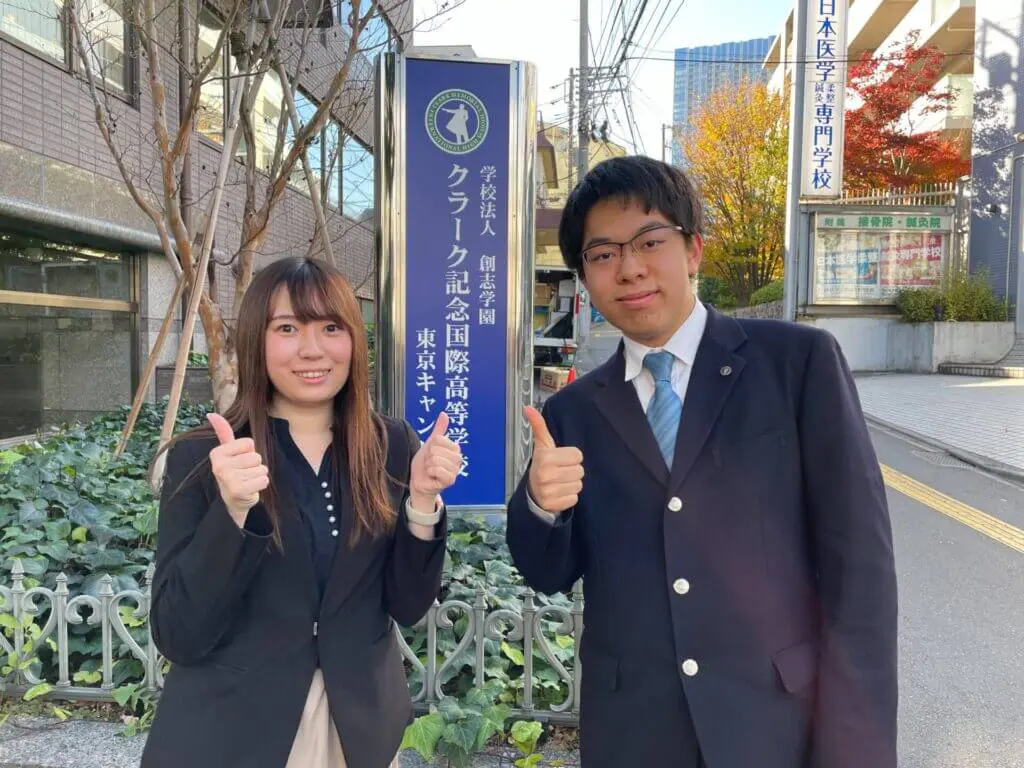「クラーク高校は夢・挑戦・達成ができる学校です。特に挑戦という意味で今、大学に行きたいと思っている人で一般入試を考えている人は推薦・総合型選抜入試も考えてみてください。また大学希望の人だけではなく、専門学校や就職を考えている人も自分は何に興味があってその進路先で何を学びたいかを考えておくと三年生になった時進路先を絞りやすいと思います。さらに自分はここでこうなるんだと想像したり、モチベーションを上げるとやる気に繋がるのでぜひやってみてください。応援しています。」
