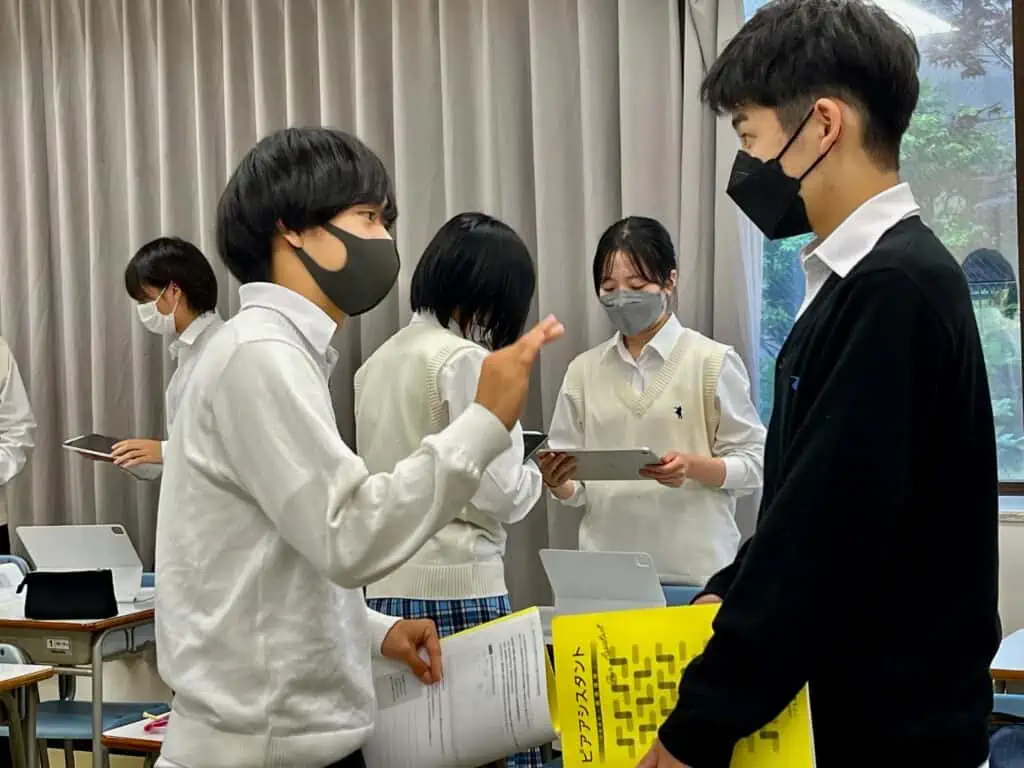 クラーク記念国際高等学校東京キャンパスに入学をして、3カ月が経った1年生。習熟度別授業や各コース授業が始まり、高校生活最初の行事「体育祭」も楽しみ高校生活に慣れてきた生徒がたくさんです!今回は、1年生が行っている『ピアアシスタント』の授業をご紹介します!