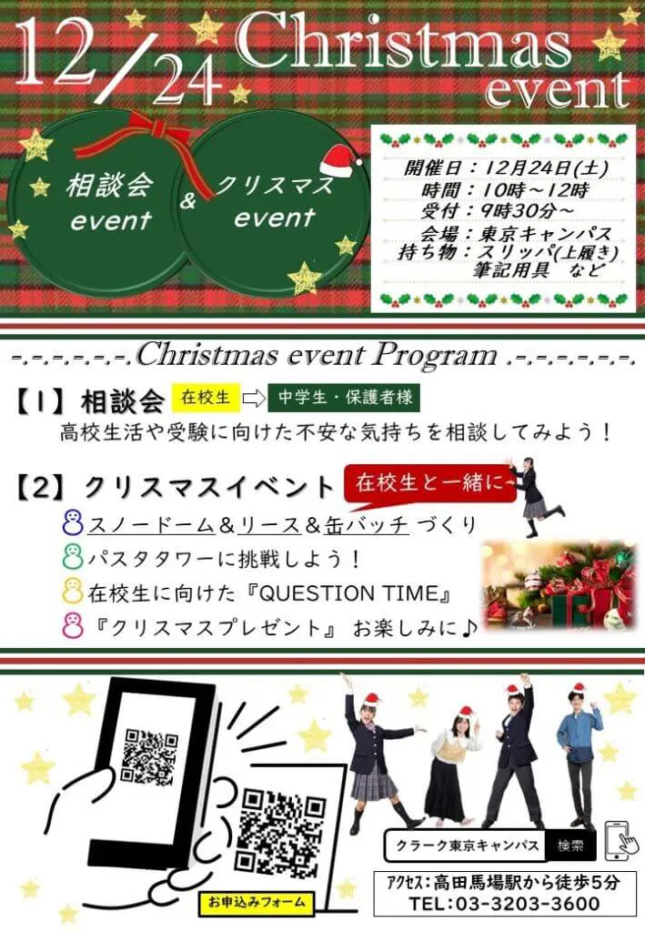 【お知らせ】12月24日『クリスマスイベント』開催~受験に向けて不安を解消!&在校生と一緒にクリスマスイベントで楽しもう!~