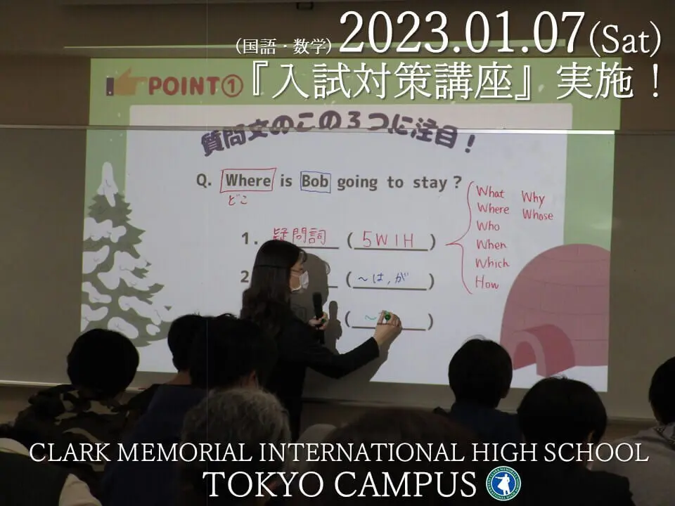 クラーク記念国際高等学校東京キャンパスでは、11月より2023年度生新入学試験がスタートしており、1月にはC日程入試を控えています。