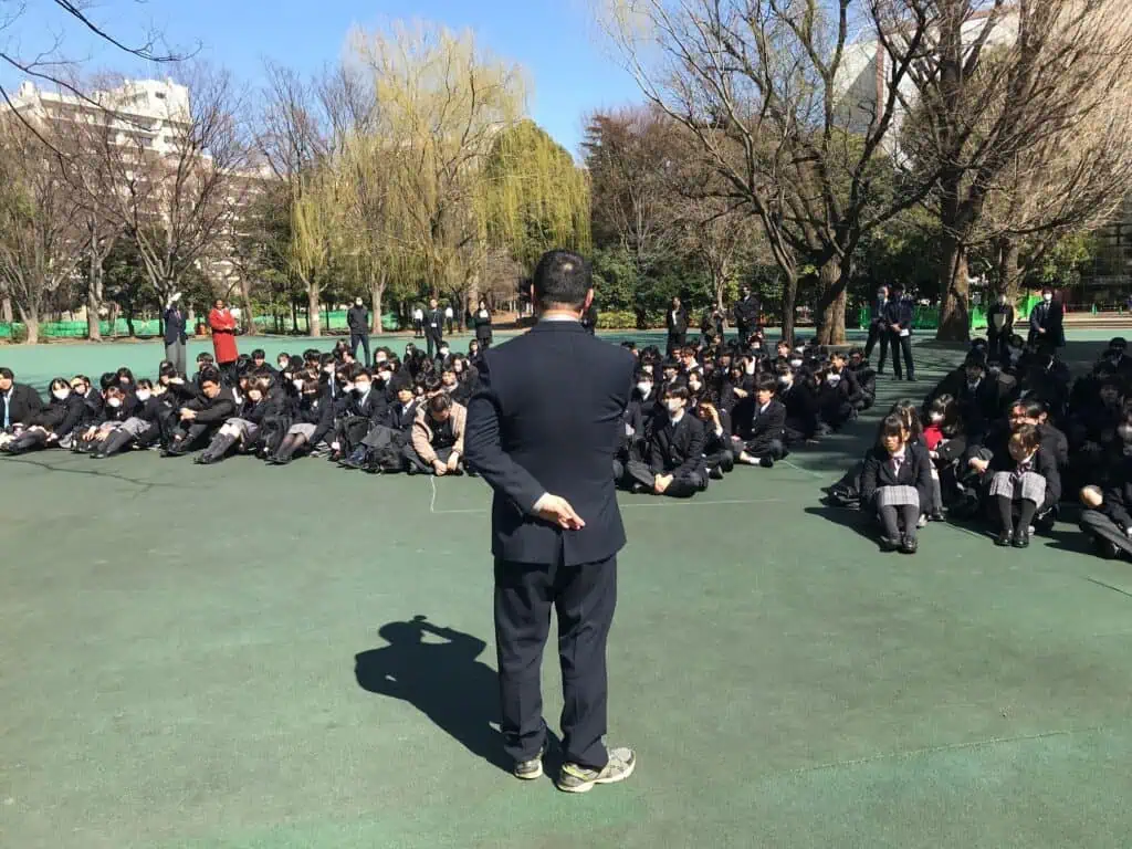 東日本大震災から13年目を迎えた今年、クラーク国際東京キャンパスでは、特別講演会「東日本大震災~逆境をエネルギーに変えて~」を開催しました。目的は、防災意識を高め、震災の記憶を未来につなげること。その流れの中で、先日私たちは避難訓練を行い、全員で戸山公園にある集合場所に避難しました。今回はAdam先生が当日の様子をお伝えします。
