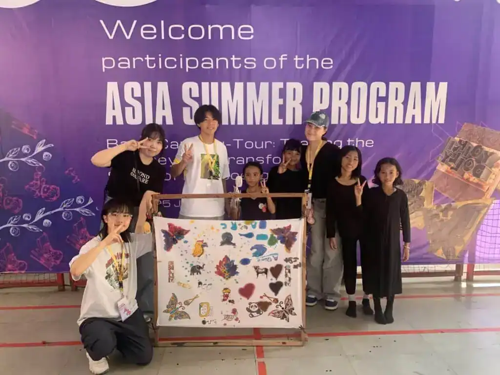 第2週のハイライトは、ユネスコ無形文化遺産にも登録されている「バティック」(ろうけつ染め)体験。クラーク国際生は、かつて東南アジア最大の遊郭から、今では創造性の拠点へと生まれ変わった「ドリー地区」を訪問しました。歓迎の舞踊「レオグ」や地元の子どもたちとのふれあいを通して、インドネシアの文化と地域の今を体感。染色体験では、思い思いの色彩で布を彩りながら、言語を超えた交流が広がりました。