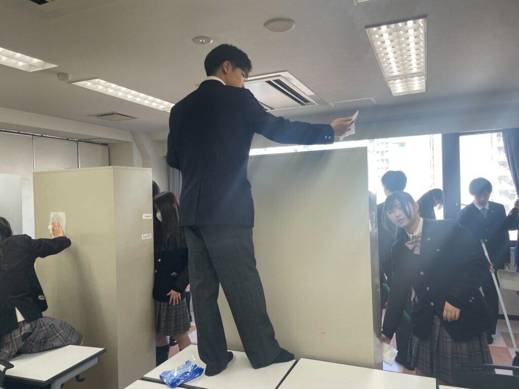 全校生徒で取り組む大掃除ということで、生活美化委員が役割分担を行い、作業はスムーズに進行。