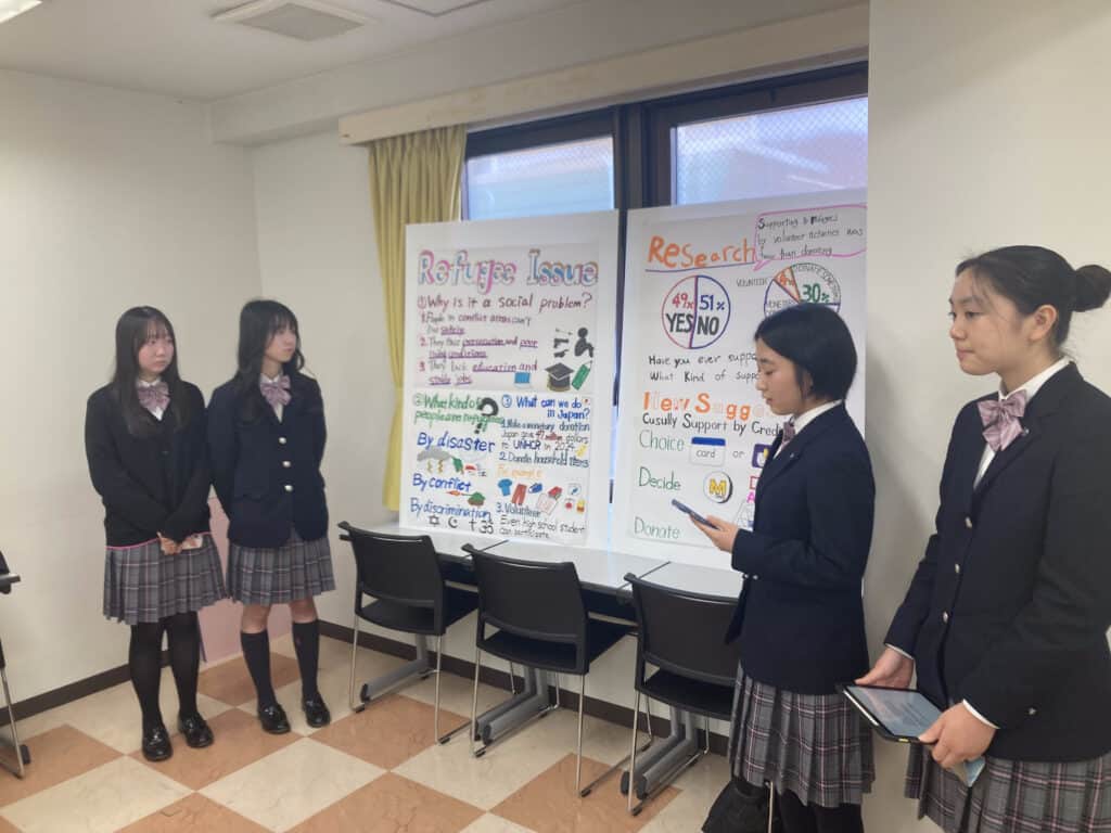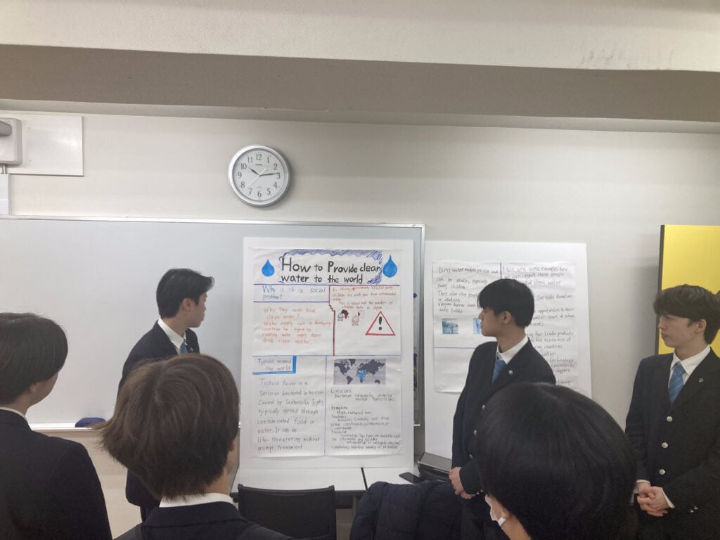 インターナショナルコースの木曜日の選択授業『Upper Presentation』の生徒たちは、探究学習の成果発表会での、英語でのポスターセッション発表資料の最終調整を進めてきました。今年度は担当教員が複数回交代するなど、クラスにとっては紆余曲折の年となりました。