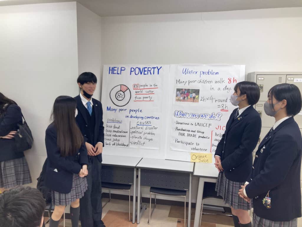 インターナショナルコースの木曜日の選択授業『Upper Presentation』の生徒たちは、探究学習の成果発表会での、英語でのポスターセッション発表資料の最終調整を進めてきました。今年度は担当教員が複数回交代するなど、クラスにとっては紆余曲折の年となりました。