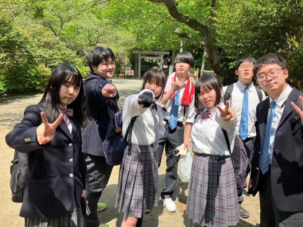 班の仲間と協力して、縁結びで知られるこの神社で楽しい時間を過ごしていました!