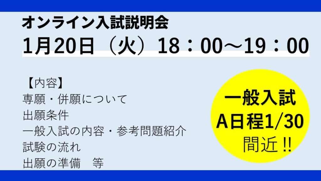 オンライン入試説明会開催!1月20日(火)18:00スタート!!