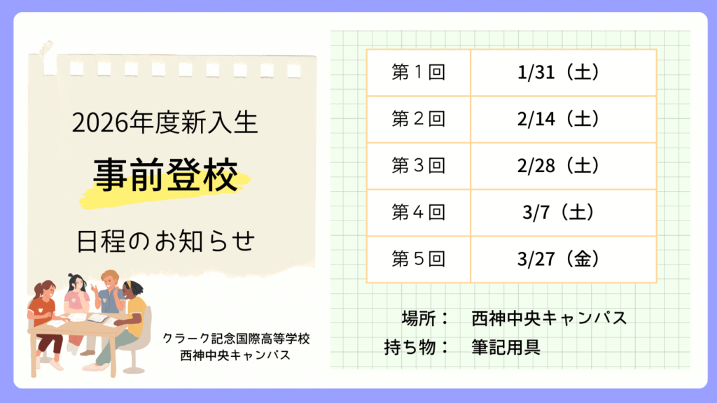 【西神中央 事前登校について】2026年度4月新入学生の事前登校のお知らせ