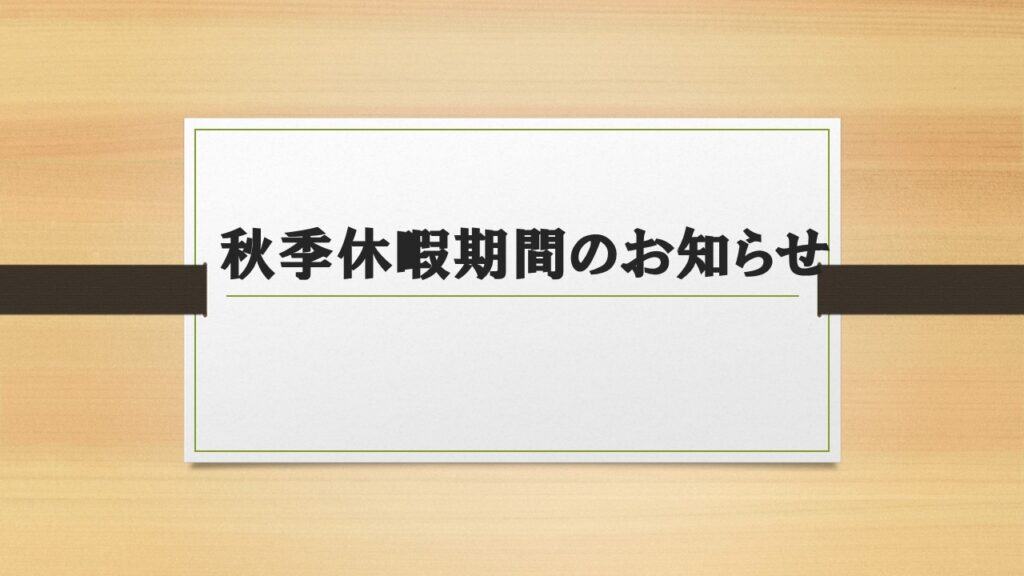 【お知らせ】秋季休暇期間のお知らせ(9月29日~10月1日)