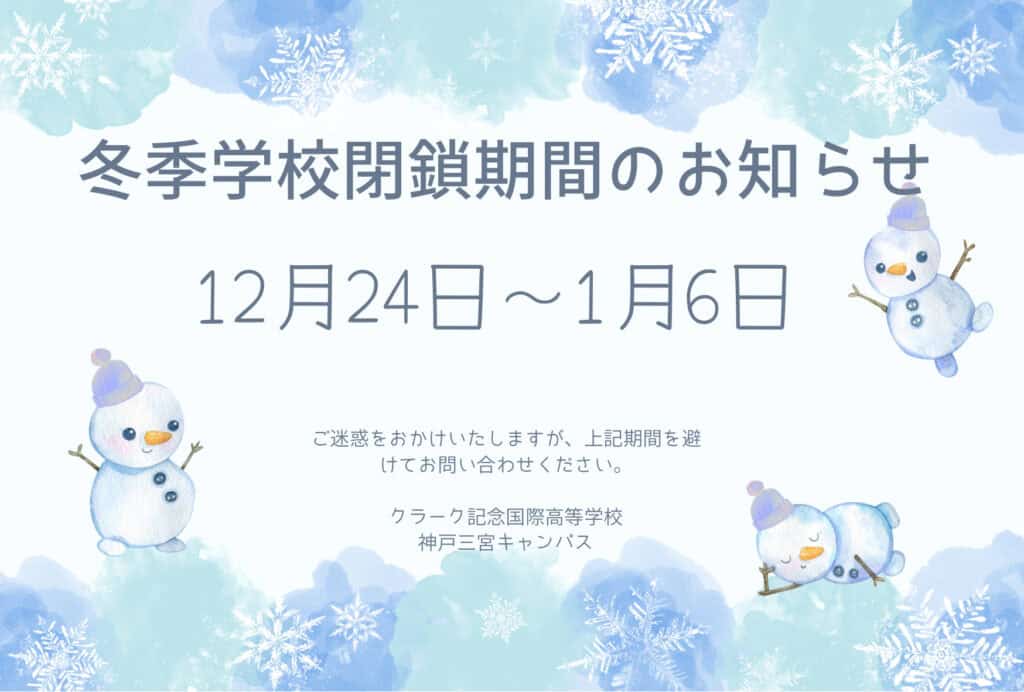 【お知らせ】冬季学校閉鎖期間について 12月24日~1月6日