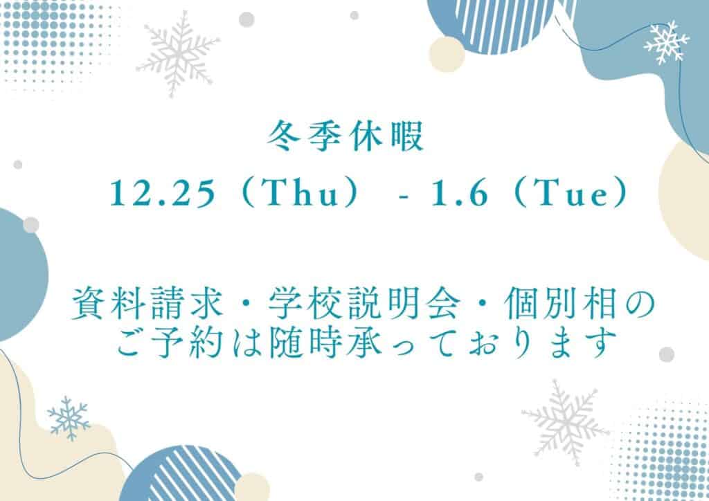 【冬季休暇のお知らせ】1月以降の学校説明会・イベント等ご予約受付中!