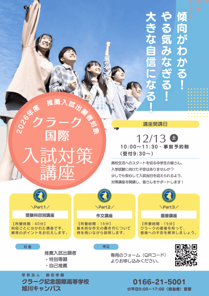 クラーク記念国際高等学校をもっと知りたい方は、是非ご参加ください。教員より詳しくご説明させていただきます。お申込みお待ちしております。 -