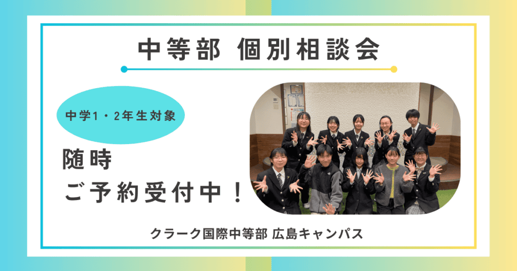 【フリースクール】クラーク国際中等部広島キャンパス 個別相談会 ご予約受付中!