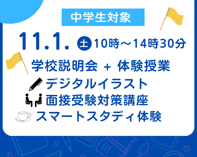 【中学生対象】11月1日(土)10:00~オープンキャンパス予約受付中です!