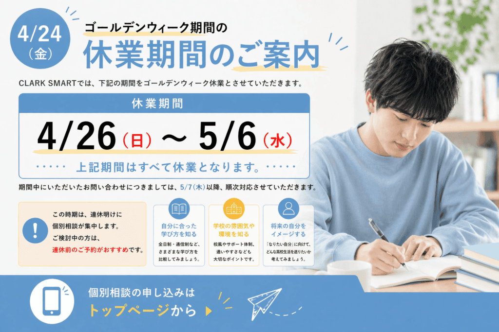 <CLARK SMART千葉>大型連休キャンパス閉室のお知らせ 4月26日(日)~5月6日(水)