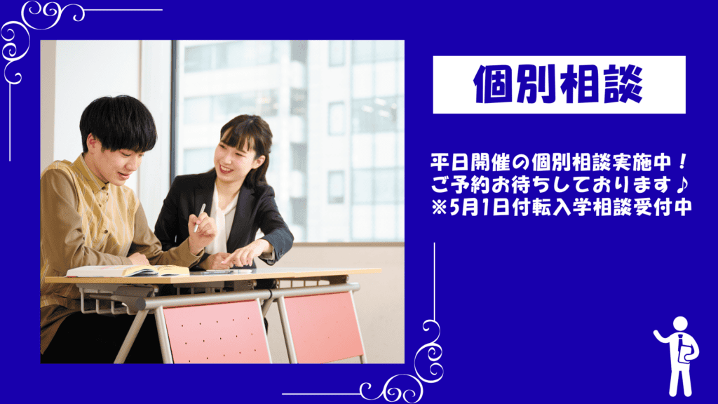 【中学生・高校生対象】平日開催の個別相談会実施中!ご予約お待ちしております。