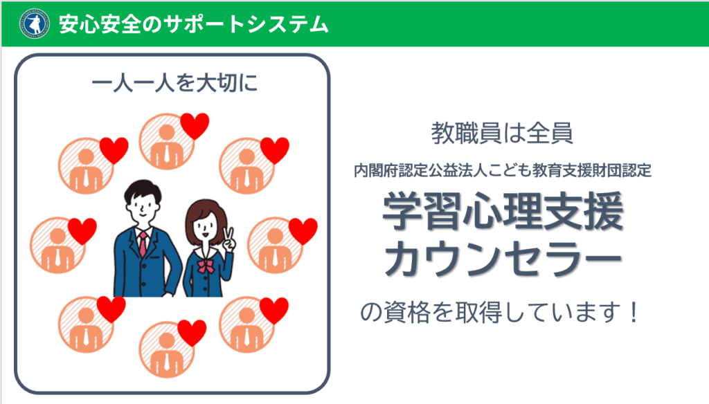 【サポート体制】教職員は全員、カウンセリングの資格を取得!安心して学校生活を送ることができます!
