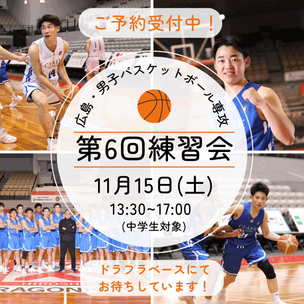 【広島・男子バスケットボール専攻】11月15日練習会・通常練習予約受付中✨
