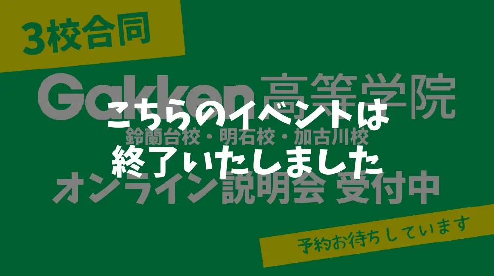 【Gakken高等学院 加古川校】オンライン学校説明会 12月13日(水)17:00~18:00開催!※こちらの受付は終了いたしました。