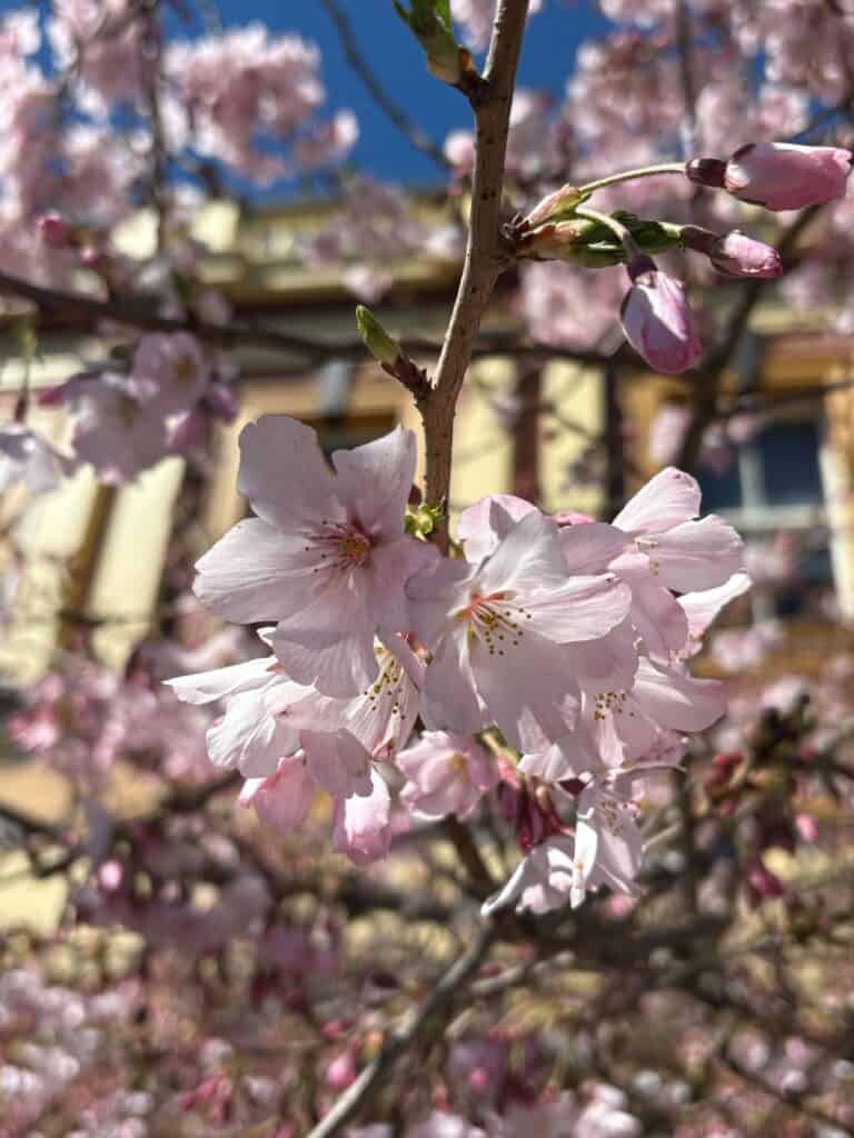 会場は私立図書館脇の桜並木で、日本文化をテーマにしたさまざまな催しが行われました。書道や和太鼓のワークショップ、着物の貸し出し、日本文化のパフォーマンスなど、会場全体が桜とともに日本の雰囲気に包まれました。