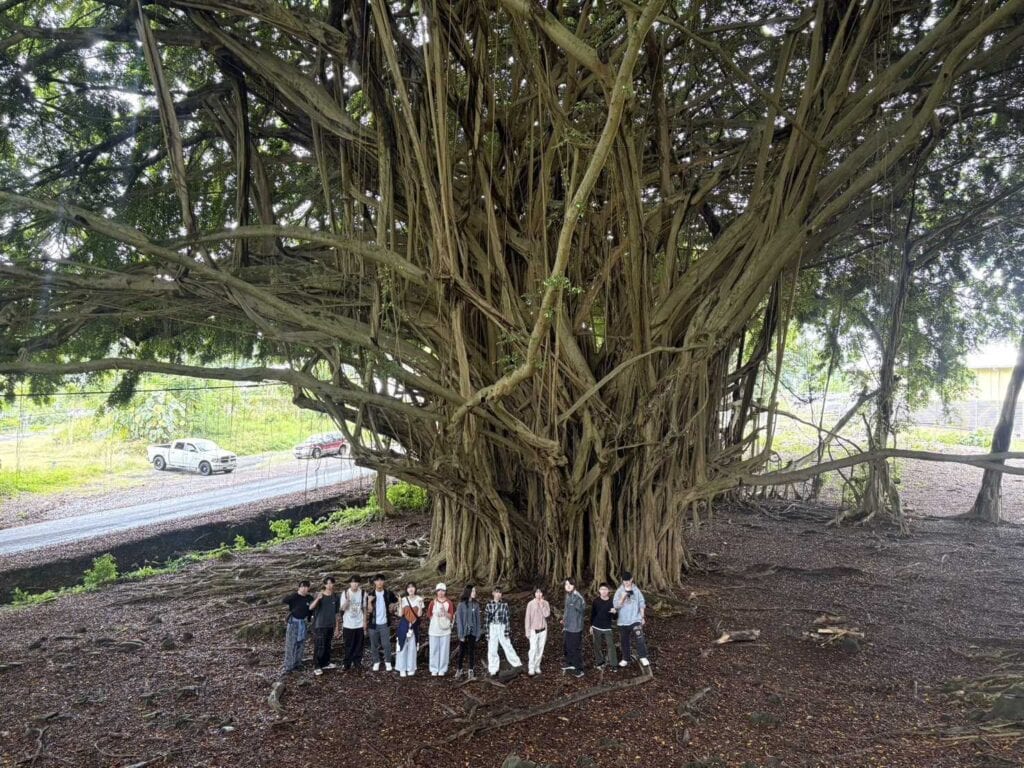 カメハメハ大王像の前で記念写真を撮影し、その後は大きく枝を広げる菩提樹の下へ。