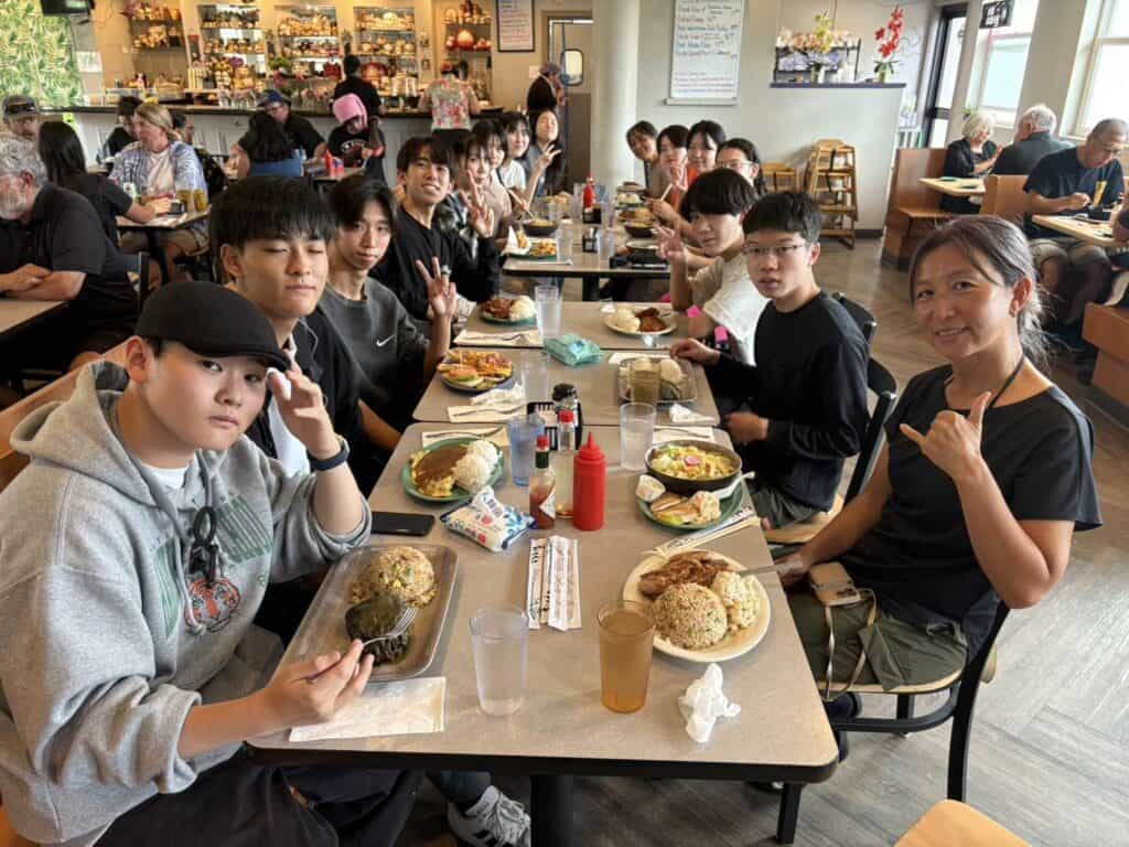 昼食はHiloのレストランでいただき、ローカルフードを楽しみました。
