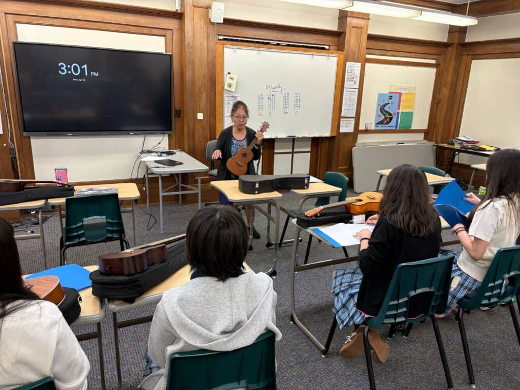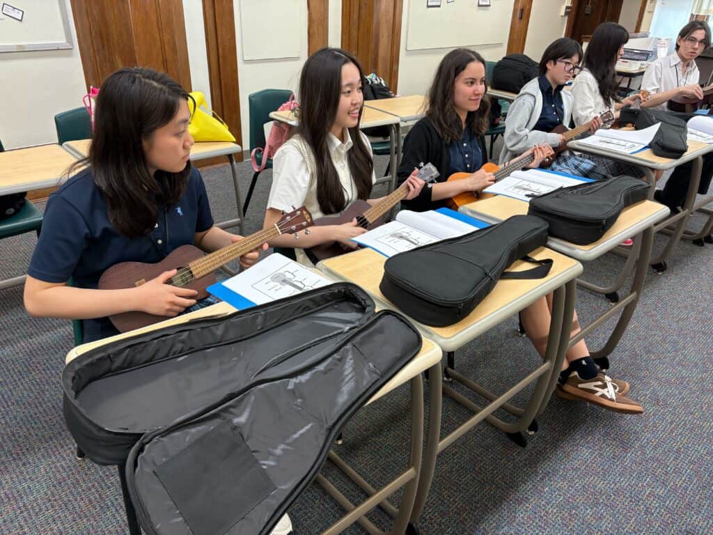 今回はウクレレレッスンの様子をご紹介します。本アクティビティでは、HBAの教員からウクレレの基礎を学びました。