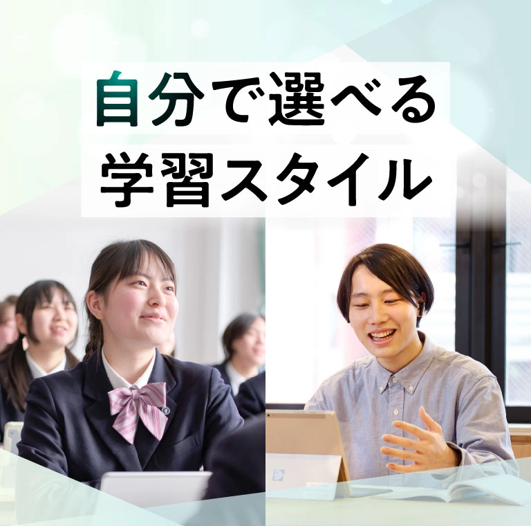 自分のペースに合わせて登校日数を選択し、私服で登校します。自律型のオンライン学習と協働型の登校学習を組み合わせて、一人ひとりの個性や適性を伸ばします。