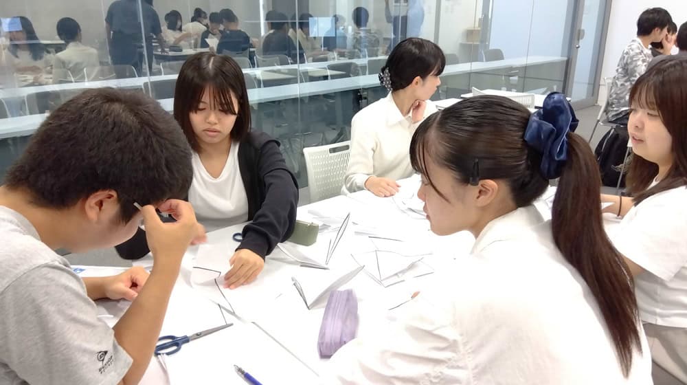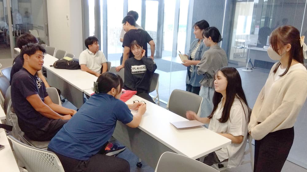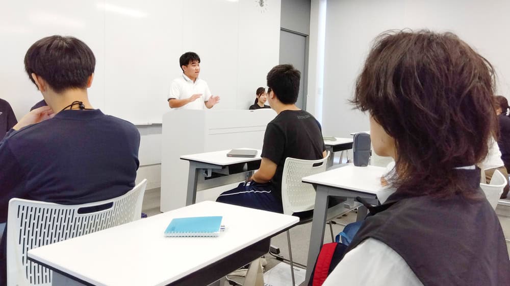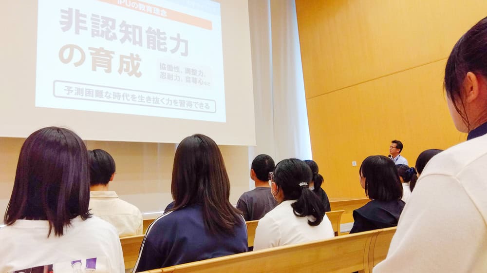 初日は、IPUや教育学科の紹介、施設見学のほか、教職科目などの体験授業がありました。また、IPUの学生が運営する学習塾「IPU学習サークル」で活動する大学生とも交流しました。サークルの取り組みについて説明を受けた後、小・中学生を対象に行われている実際の授業を見学。児童生徒の年齢に合わせた声かけや、学習意欲を引き出す工夫など、大学生が作る授業に、生徒たちは熱心にメモを取りながら参加していました。