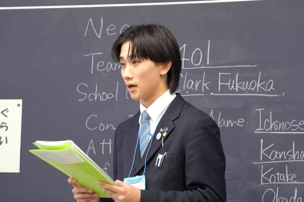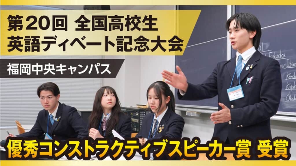 この全国大会に、クラーク福岡中央キャンパス 国際専攻の生徒4名が出場しました。全国から集まった高校生ディベーターたちと英語で討論を行い、一ノ瀬さん(3年)が優秀コンストラクティブスピーカー賞を受賞しました。