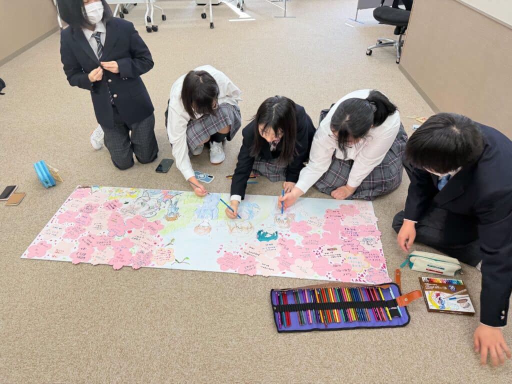 さくらの花に書いたそれを、新入生自身がペタペタとパネルに貼り付けてくれました。