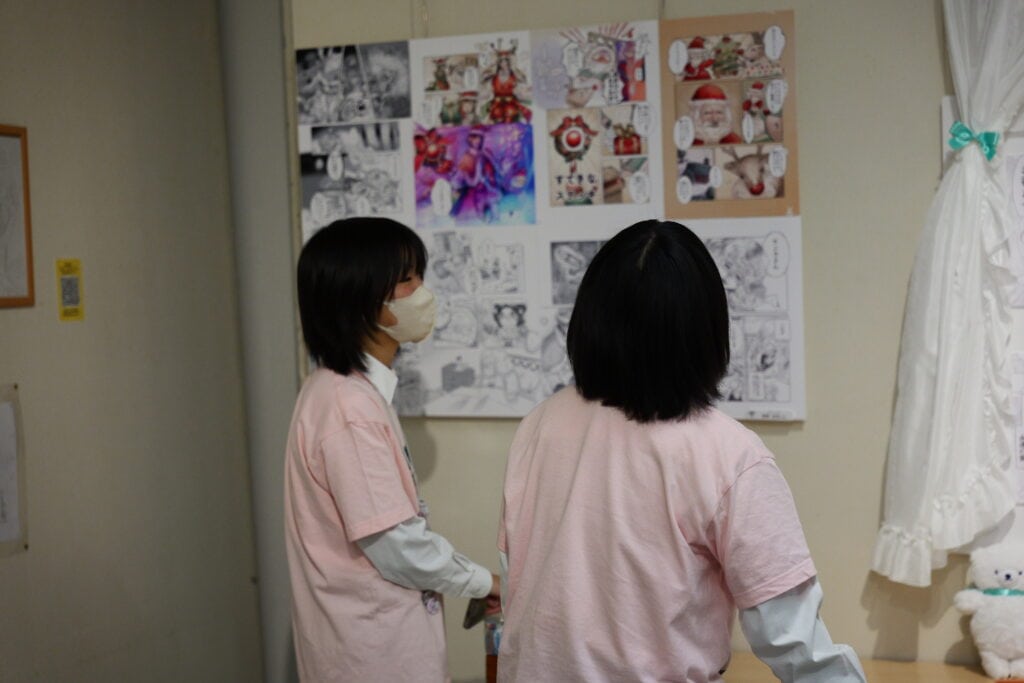 いつもは大人しい印象のあるマンガイラスト専攻の生徒たちですが、この期間はみんないきいきと楽しそうに作業をしており、とても良い展示になりました。