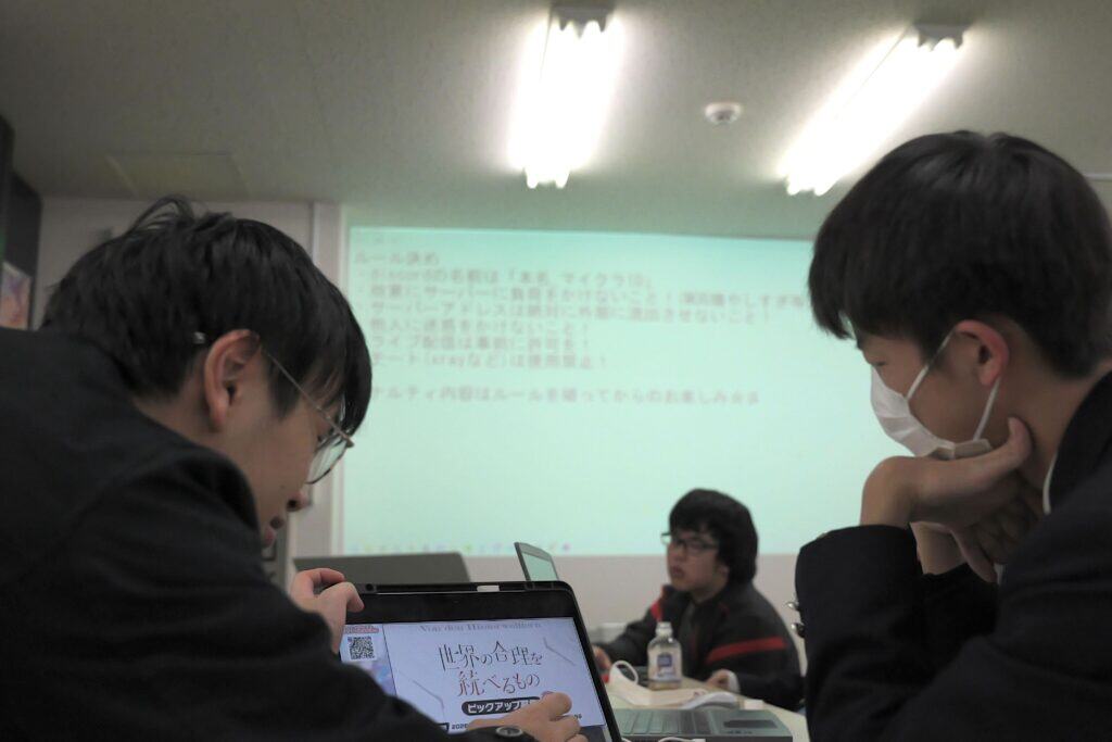 コースの垣根を越えてより良いサーバー運営の為に今日もマイクラ部は活動をしています。