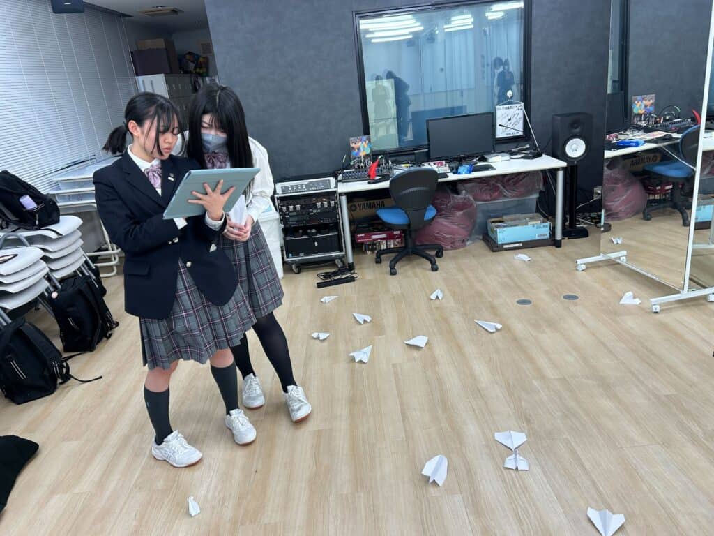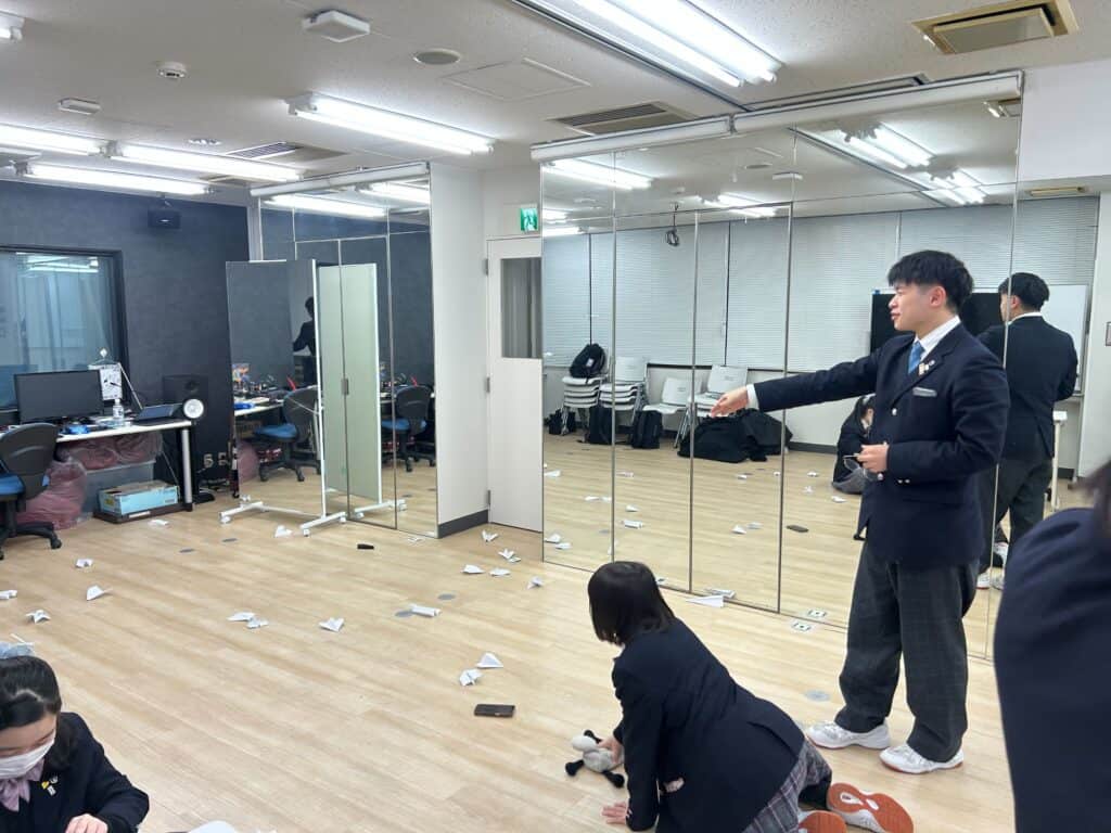 完成した紙飛行機を教室中に飛ばし、ランダムにシャッフル。